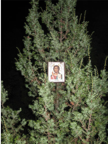 Уже к закату дня мы добрались до скита св. Анастасии, где нас любезно встретил наместник о. Дорофей. Насельники монастыря угостили нас арбузом, а затем предоставили возможность помолиться в храме и оставить записочки.