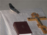 Над молящимися порхали ласточки, устроившие гнездо под сводом храма. Совсем молодые птенцы только учились летать, и присев отдохнуть внимательно