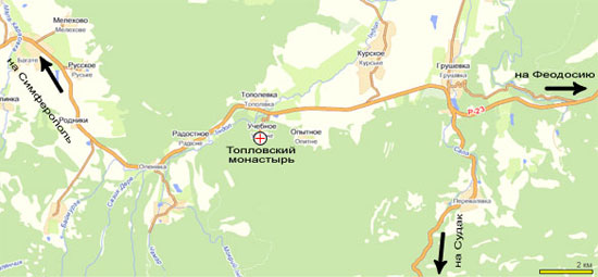 Добраться в Топловский Свято-Параскевиевский женский монастырь можно автобусом или личным автотранспортом. Из Симферополя до остановки с. Тополевка, а затем от придорожного креста подняться по дороге ведущей к обители.