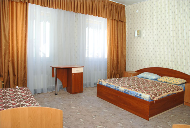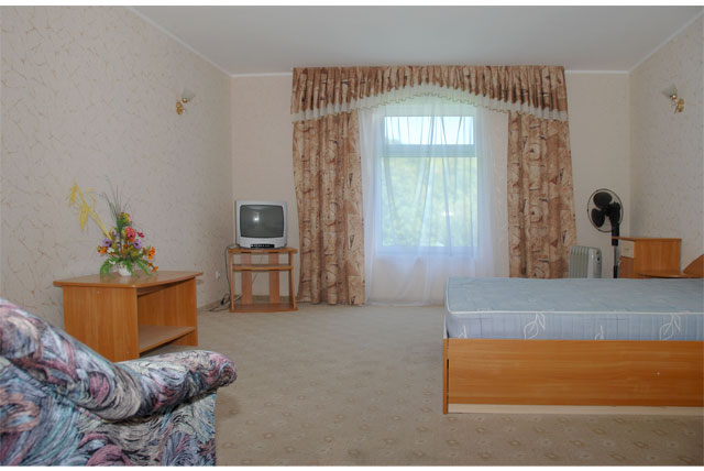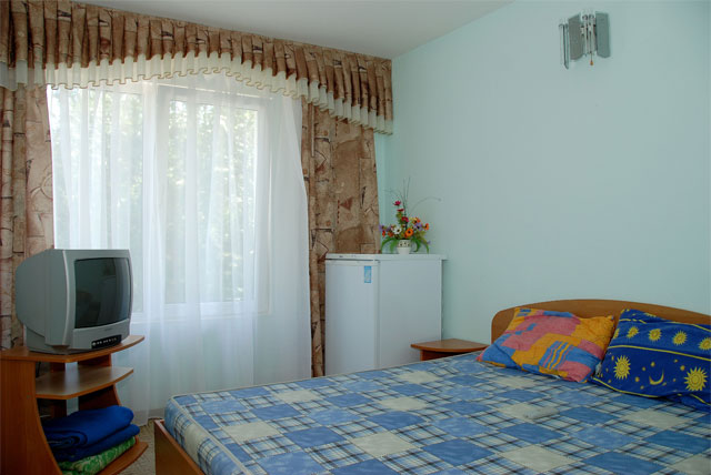 — в гостиничном корпусе: 2 — 3-х местное размещение, все удобства, телевизор и холодильник в номере, горячая вода постоянно;