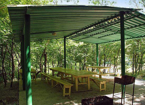 От пансионата до моря всего 10 минут ходьбы по тенистой аллее вдоль горной речки. Галечные пляжи, на которых будут отдыхать паломники, чистые и оборудованные.